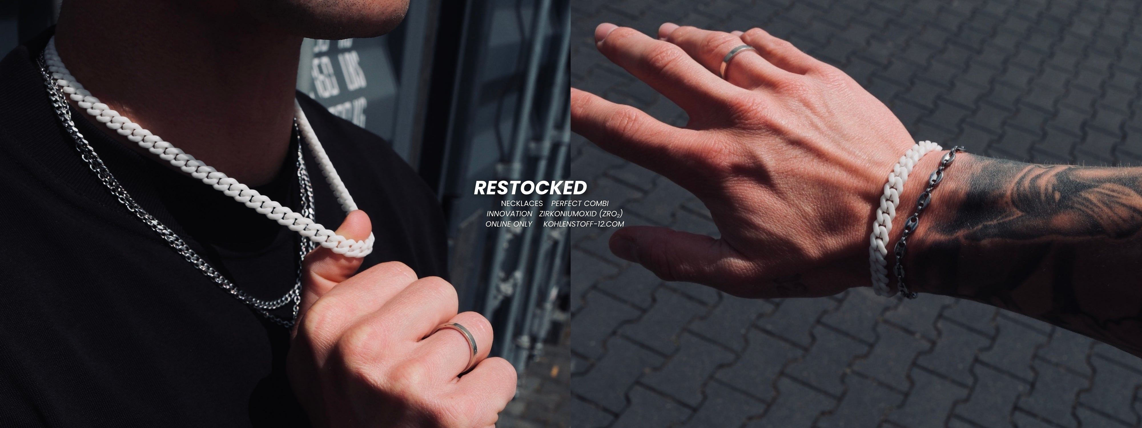 Unsere Kollektion verbindet Streetwear-Schmuck mit hochwertigen Materialien wie Edelstahl, Keramik, Carbon, und Forged Carbon. Ob schwarze Halskette, Cuban Chain, Carbon Armband oder DLC-beschichtete Kette – jedes Stück ist so konzipiert, dass es nicht verfärbt, nicht abfärbt und dir lange Freude bereitet.